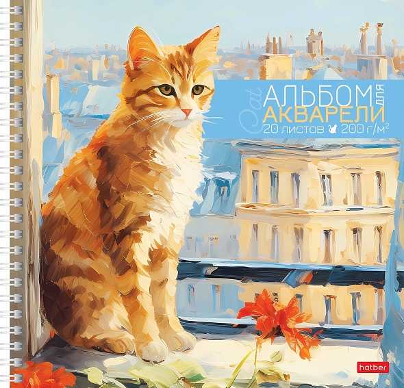 Альбом для акварели на спирали 20 л.205x205 мм Хатбер Кот-мечтатель