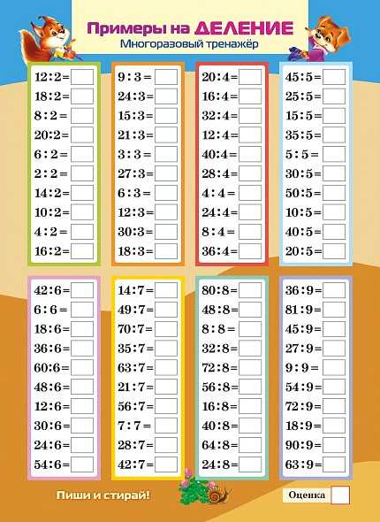 Игра обучающая Хатбер Многоразовый тренажер Пиши и стирай Умножение и деление