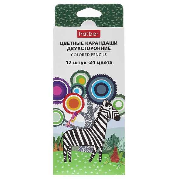Карандаши цветные двухсторонние 12 шт.,24 цв.Hatber 63846