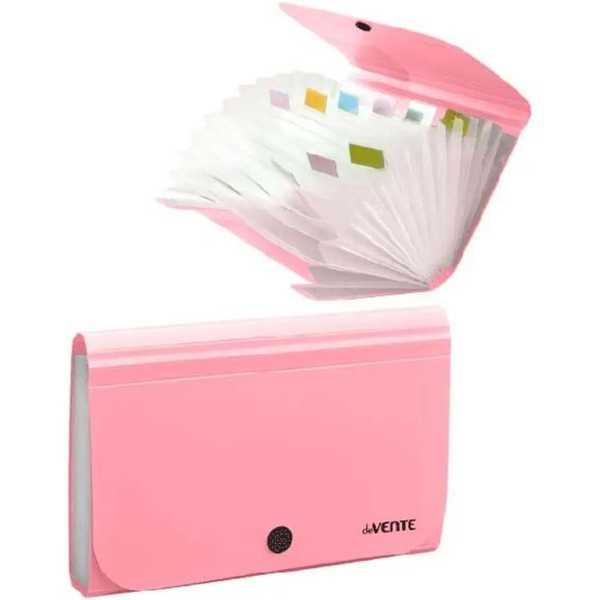 Папка на кнопке с 12 отделениями A5 (0,70 мм) deVente 3078401 розовая
