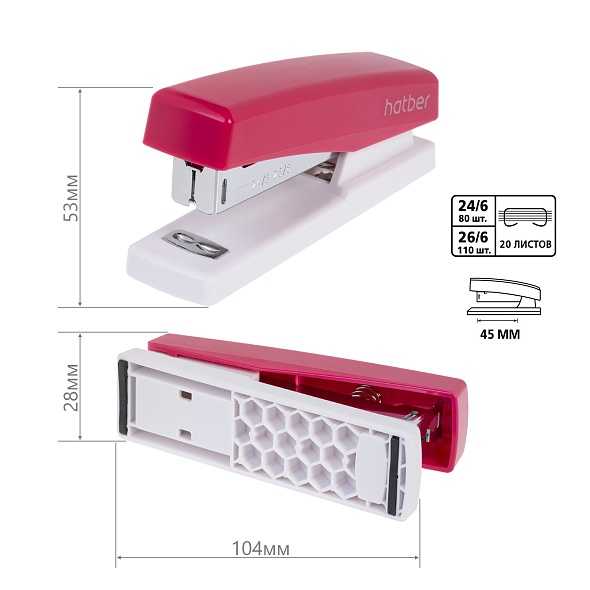 Степлер N 24 Hatber 85955 (20 л., 80 скоб)