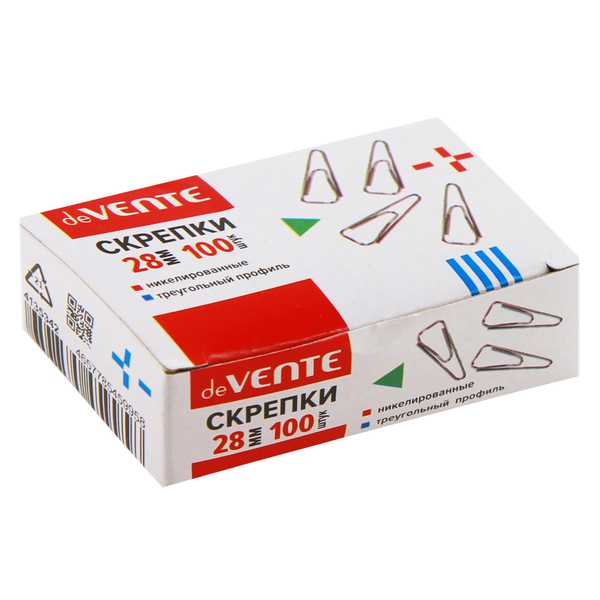 Скрепки никелированные треугольные 28 мм 100 шт.deVente 4135342